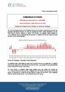 Accueil > Communiqués de presse > 2022 > Coup d’arrêt pour l’assurance vie en août > CP Cercle de l’Epargne – Philippe Crevel Assurance vie – résultats août 2022