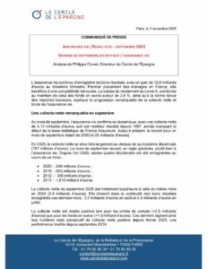 Accueil > Communiqués de presse > 2025 > L’Assurance vie à grande vitesse > Communiqué de presse de Philippe Crevel – Cercle de l’Epargne – assurance vie sept 25