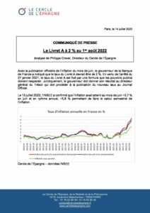 Accueil > Communiqués de presse > 2022 > Le Livret A à 2 % ? > CP Cercle de l’Epargne – Le Livret A à 2 % au 1er aout 2022