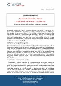 Accueil > Communiqués de presse > 2025 > Les Français, champions de l’épargne > CP journée mondiale de l’Épargne