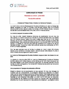 Accueil > Communiqués de presse > 2023 > Pas de trêve estivale pour le Livret A > Communiqué de presse de Philippe Crevel Cercle de l’Epargne résultats du Livret A juillet 2023