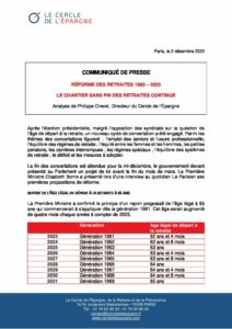Accueil > Communiqués de presse > 2022 > Réforme des retraites 1993 -2023 : le chantier sans fin des retraites continue > CP Cercle de l’Epargne – Philippe Crevel – Réforme des retraites